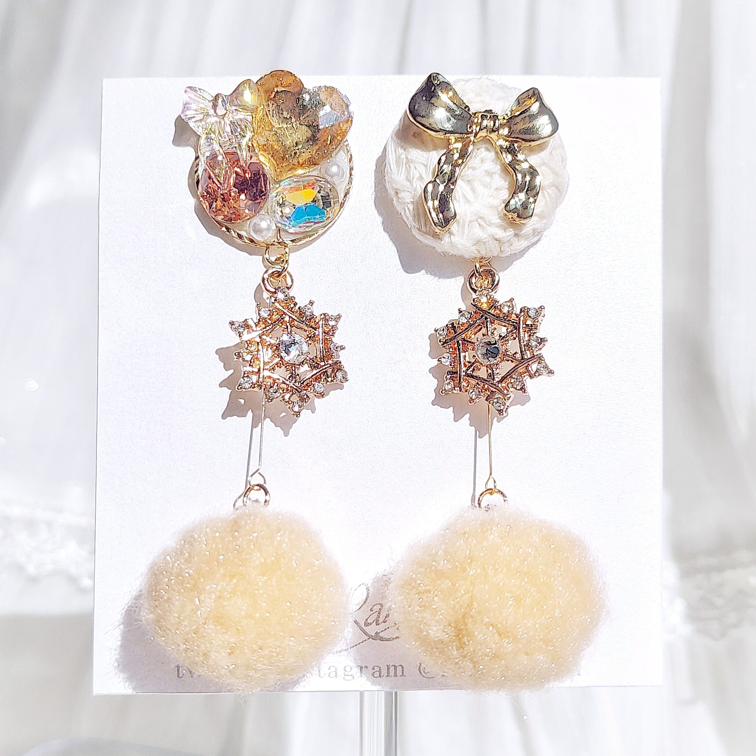 スノーハート ピアス イヤリング ゆめかわいい ハート ハンドメイド