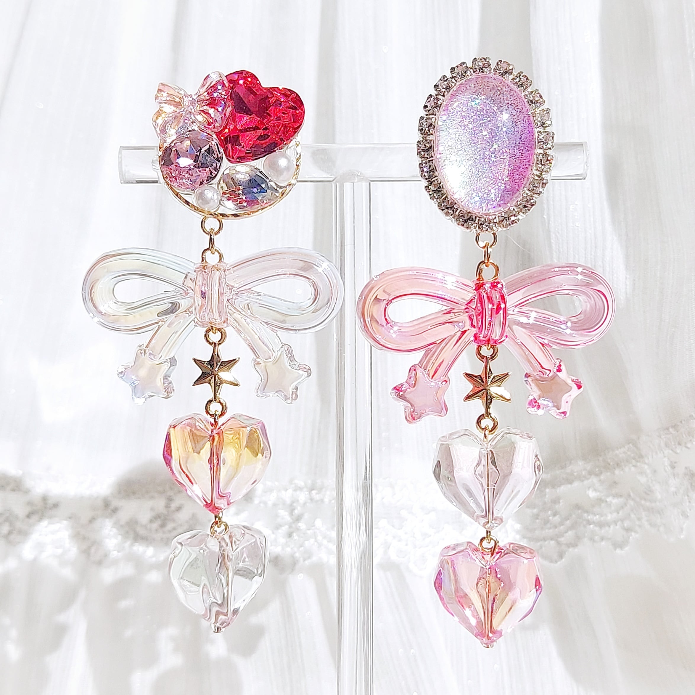 オーロラリボン ピアス イヤリング ゆめかわいい ハート ハンドメイド