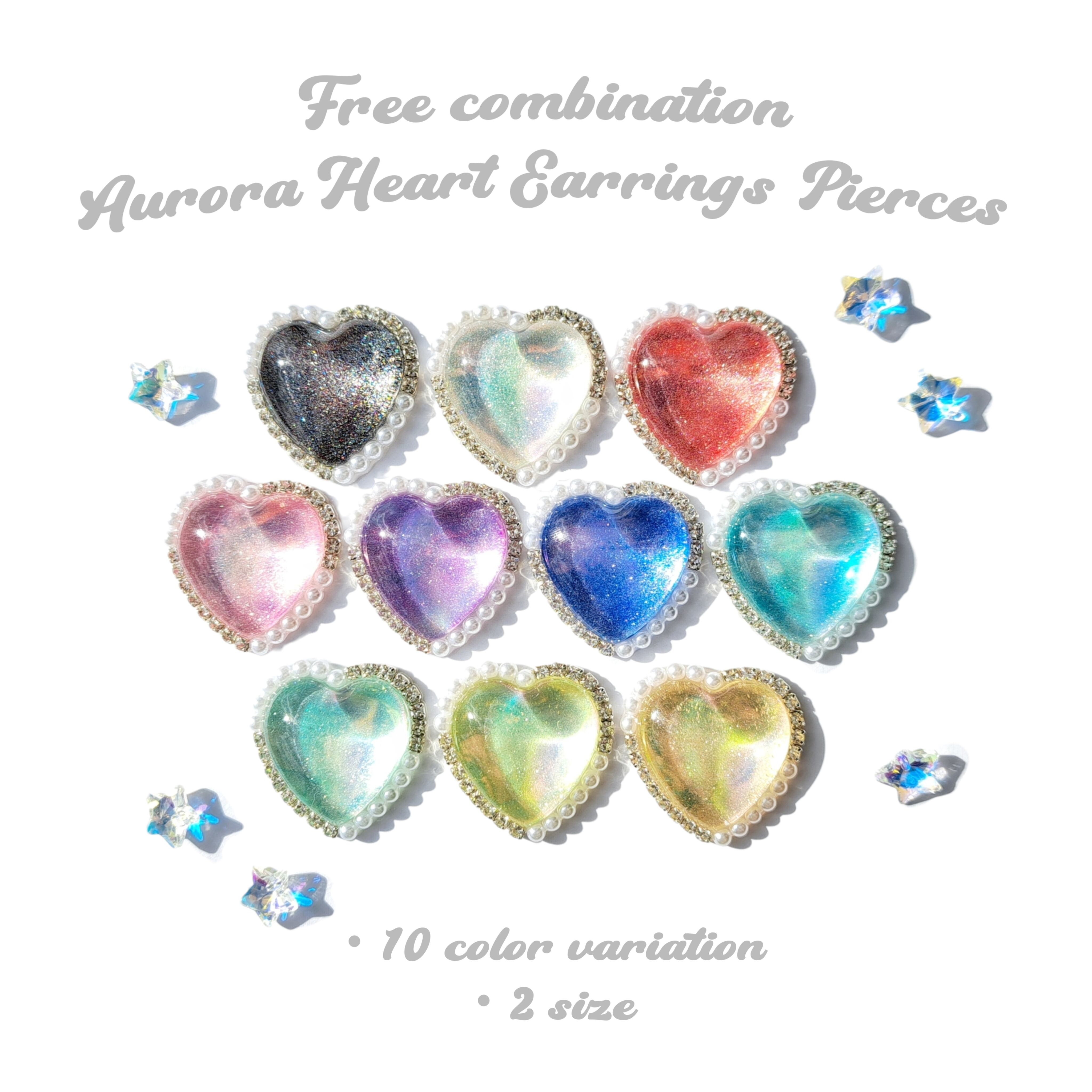 10色から組み合わせ自由 オーロラときめきハート ピアス イヤリング
