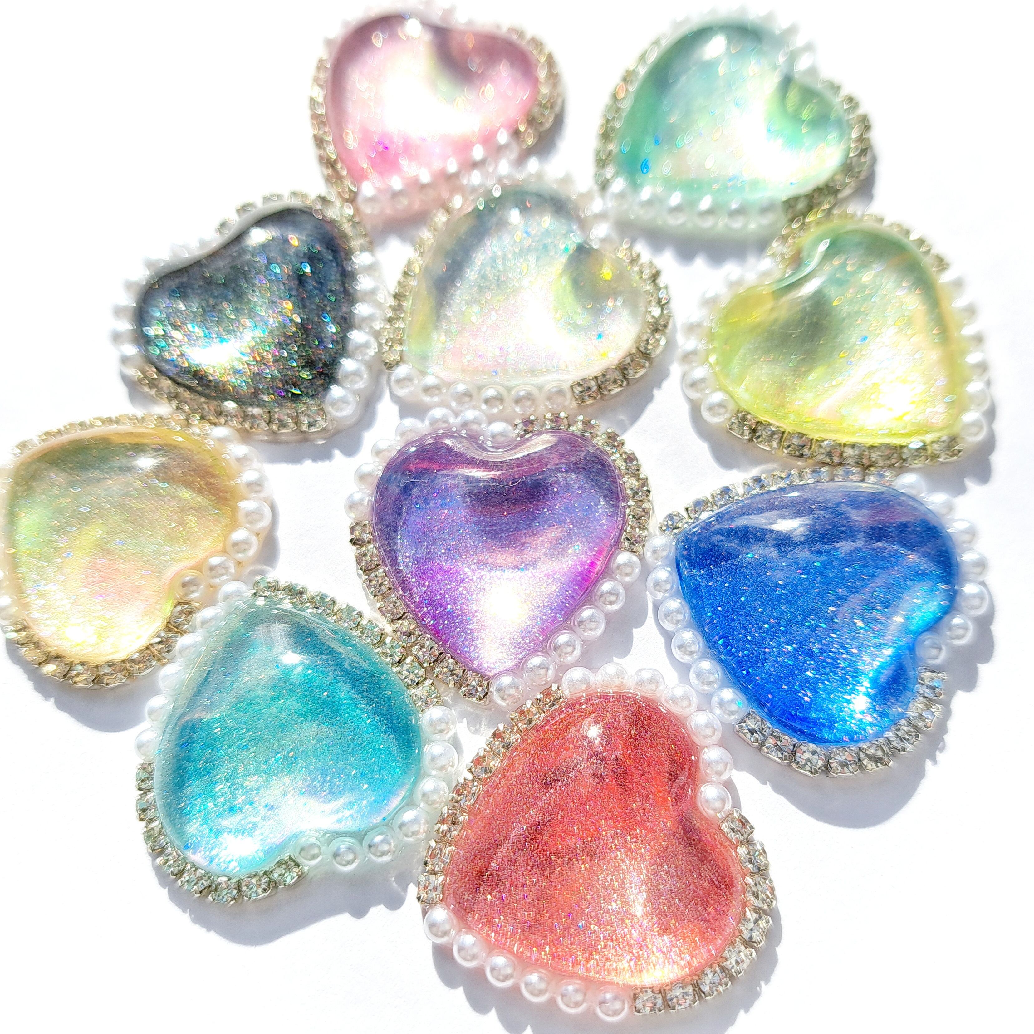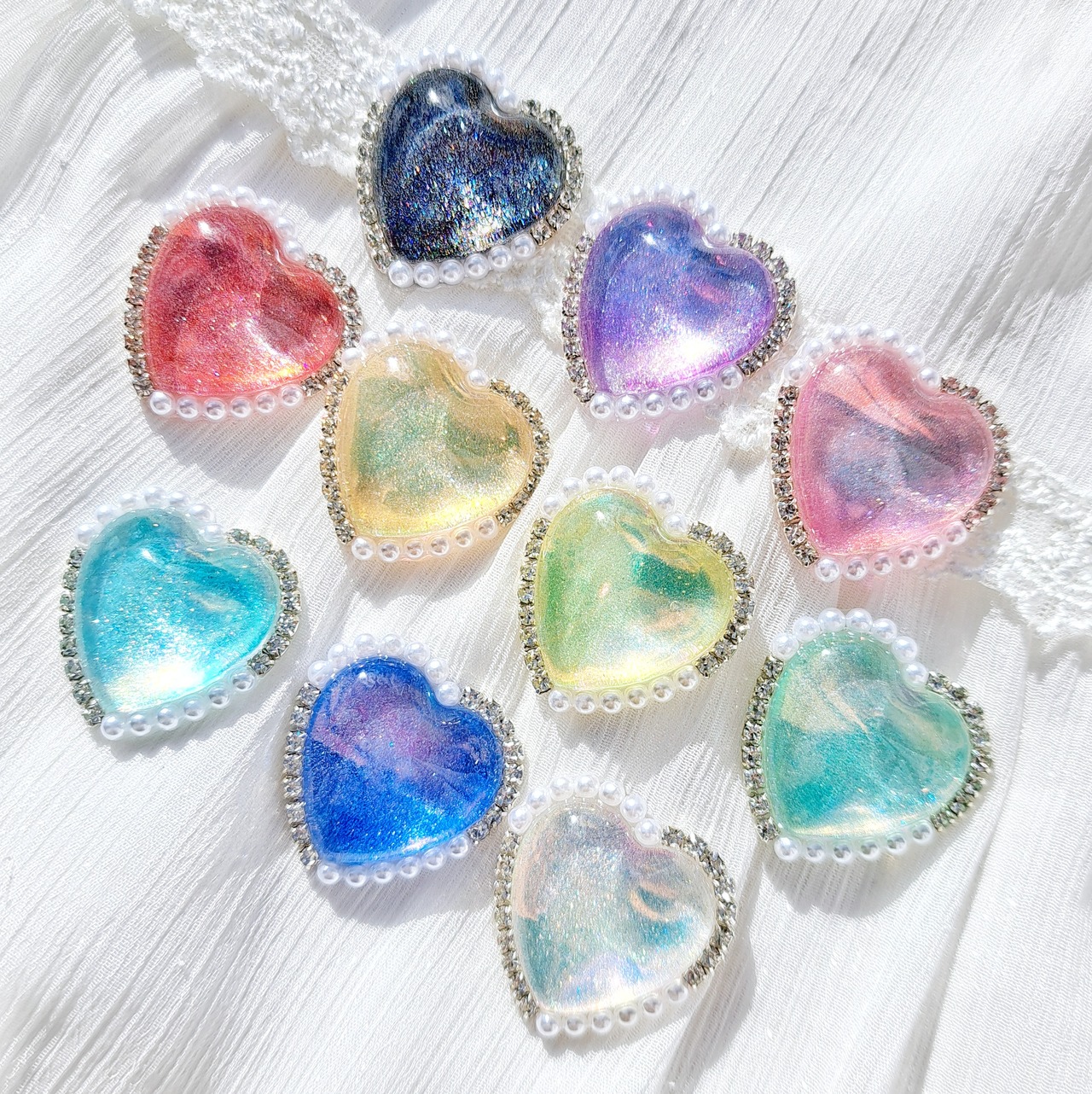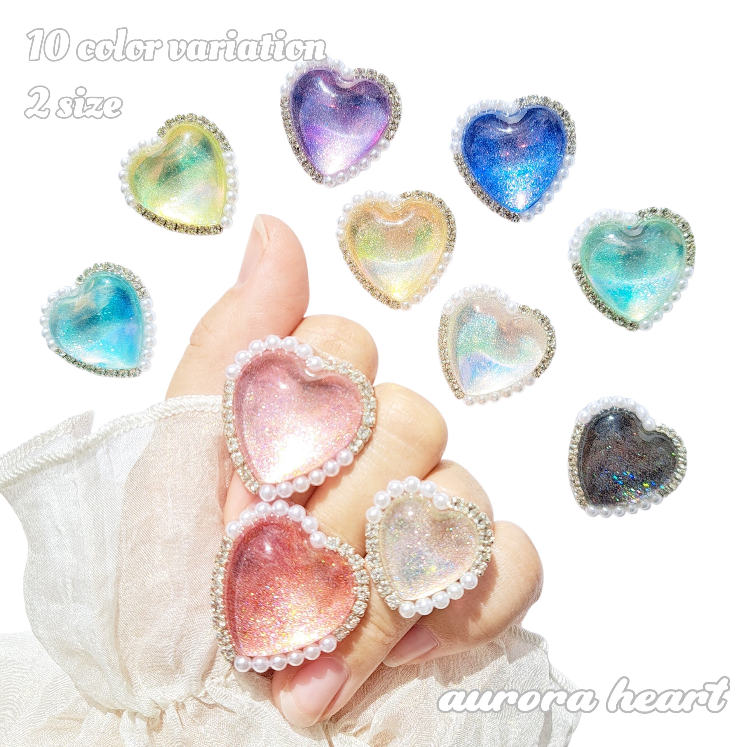 ピンク、ブルー、ラベンダー、イエロー、グリーン、シルバーの多色ラメがキラキラ輝き、ラメの奥にウルッと輝くオーロラにキュンっと心が高鳴ります。