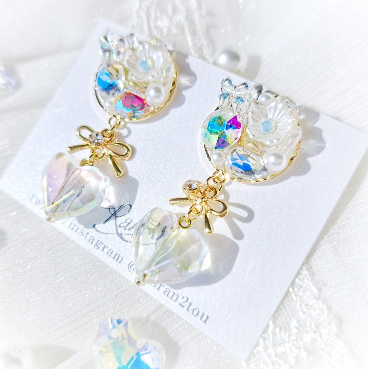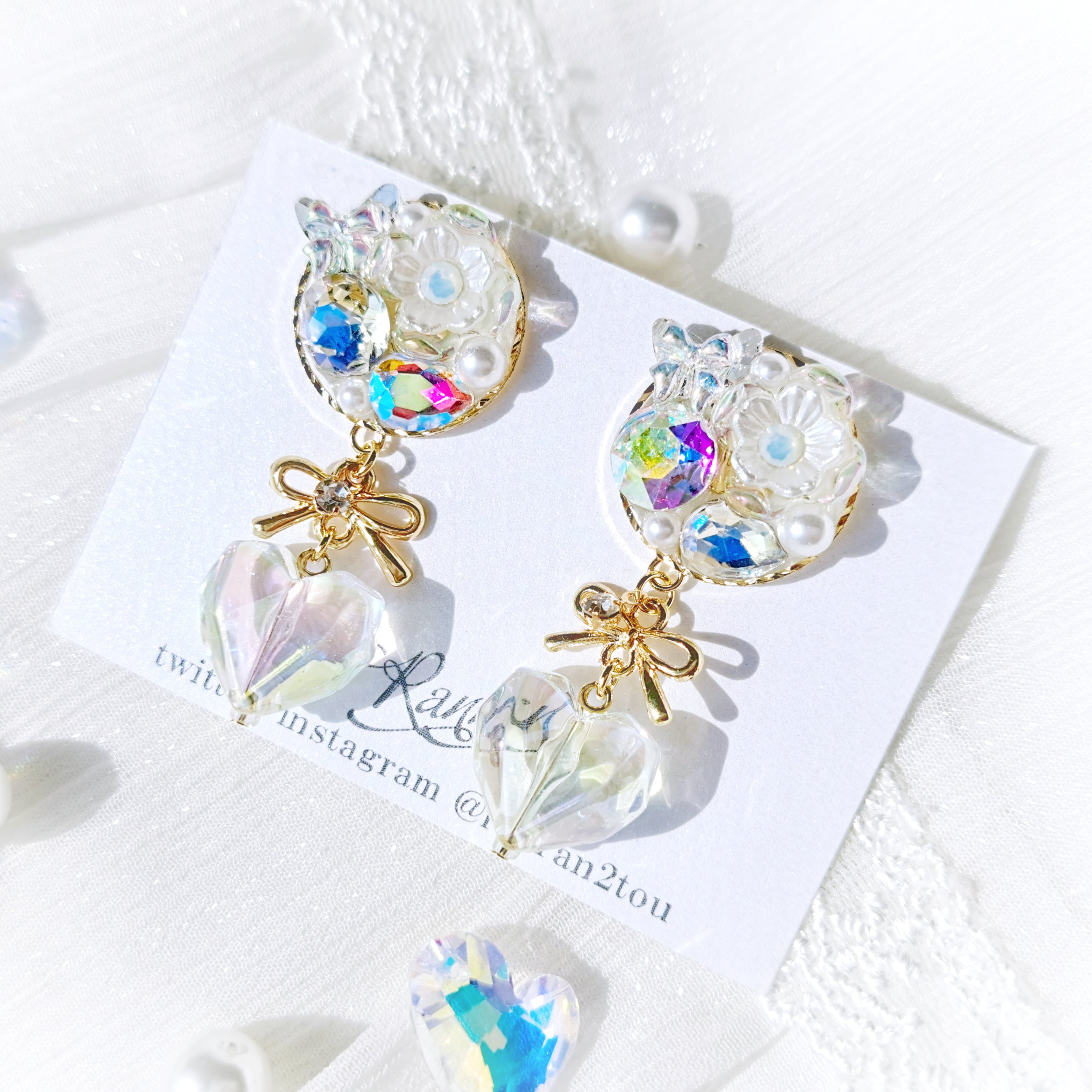 ✧小さめオーロラハートとゴールドリボンが