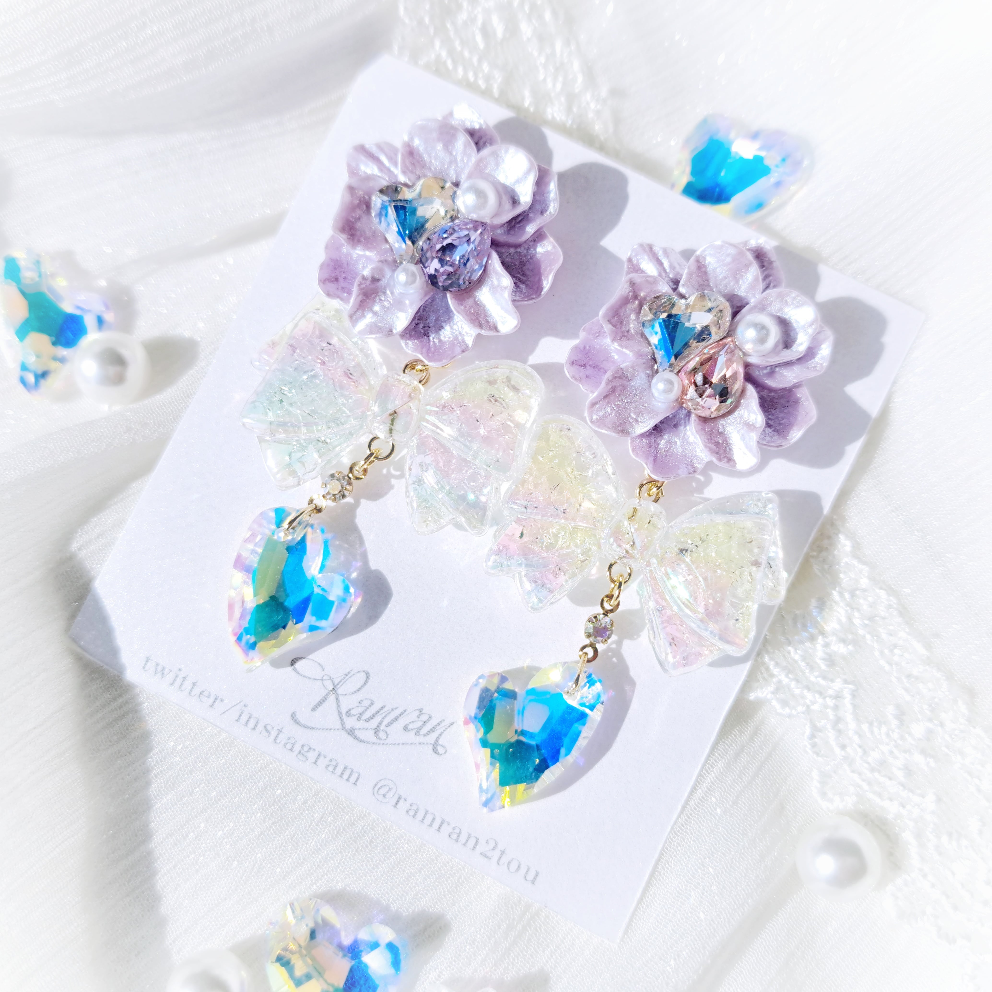 ✧パール調のお花にキラキラ輝くビジューをトッピング✨