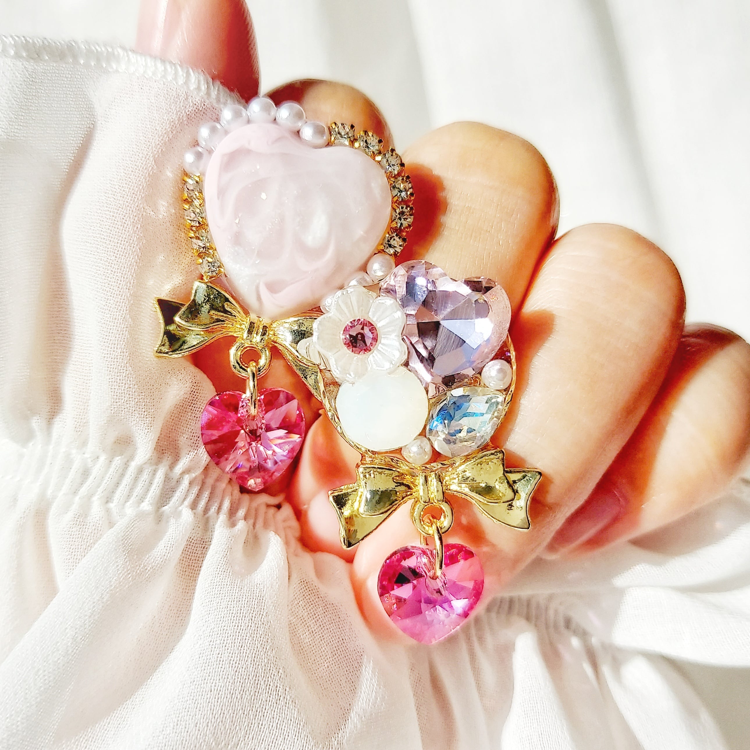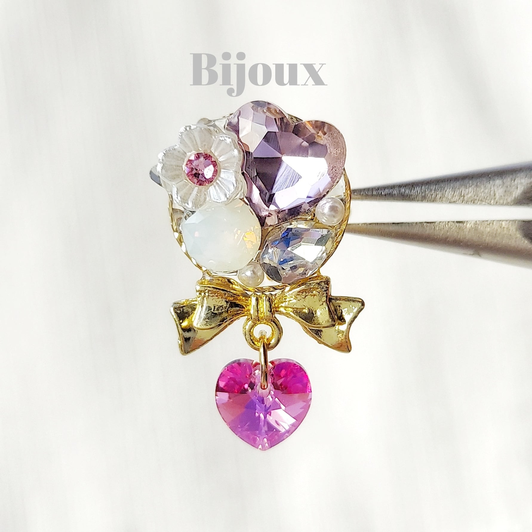 ピンクトルマリン・オパールをイメージして、ライトローズAB・ホワイトオパールというカラーのガラスストーンを使用して制作致しました。